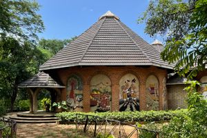 The mission dates back to 1902, when three “White Fathers” (Catholic priests dressed in white robes) arrived in Mua. They settled under a baobab tree in the spot now marked by the centre’s Chamare Museum. But it wasn’t until 1976 that Father Claude Boucher Chisale expanded the mission into a cultural center. Today, it includes the museum with its four frescoed buildings, a botanical garden, a dance/ceremonial boma, an art gallery, and a shop.