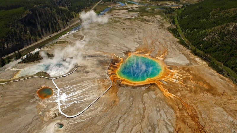 So Grand Prismatic Spring is the largest hot spring in all of Yellowstone. It’s a truly magnificent example of hot springs. Typically, what the geologists tell us is that if you find hydrothermal areas at the edges of lava flows, this hot water is coming up from depth.